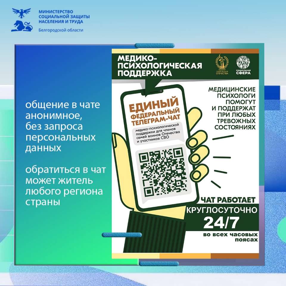Единый федеральный чат Комитета семей воинов Отечества медико-психологической поддержки семей и участников СВО с 01 апреля 2025 года перешел на круглосуточный режим работы.