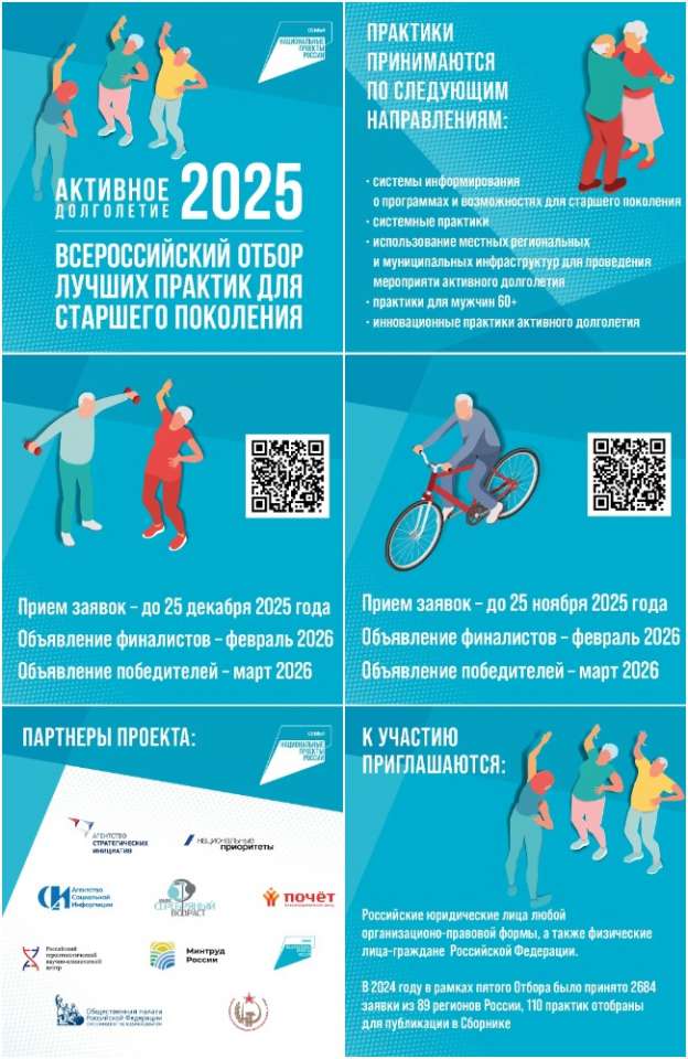 Приглашаем к участию в шестом Всероссийском отборе лучших практик для старшего поколения «Активное долголетие 2025»!