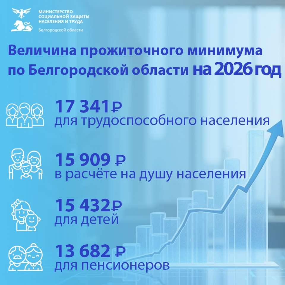 Подробнее о величине прожиточного минимума по Белгородской области на 2026 год смотрите в карточке.